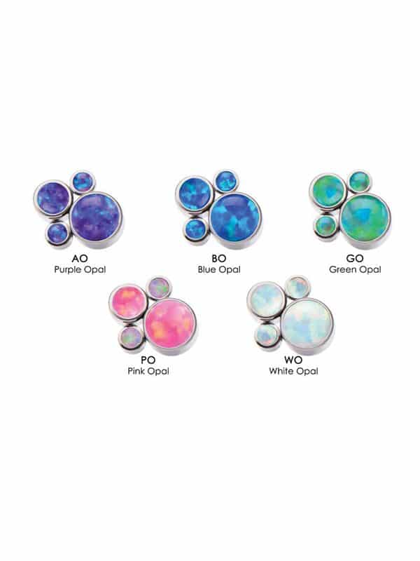 Minimal 4-cluster top με created opal πέτρες σε smooth, round setting για ισορροπημένο, soft look.