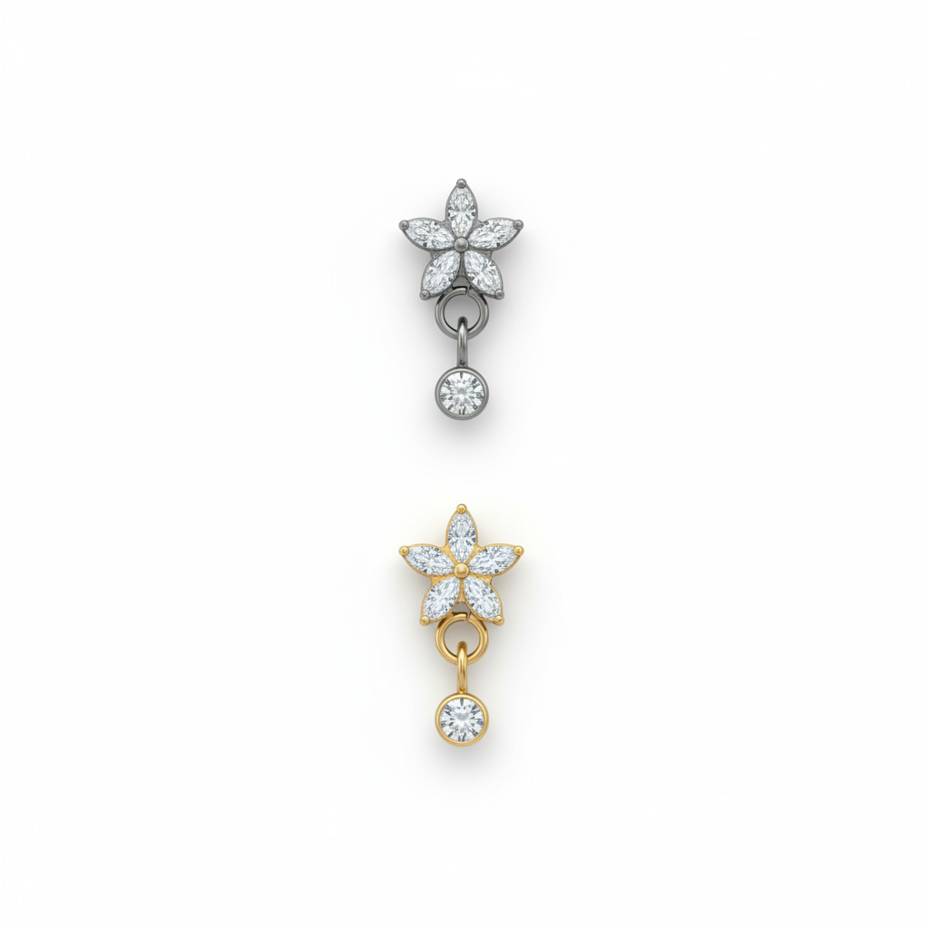 Ένα λουλουδάκι λωτός με dangling CZ που προσθέτει μία φωτεινή, παιχνιδιάρικη λεπτομέρεια στο αυτί.