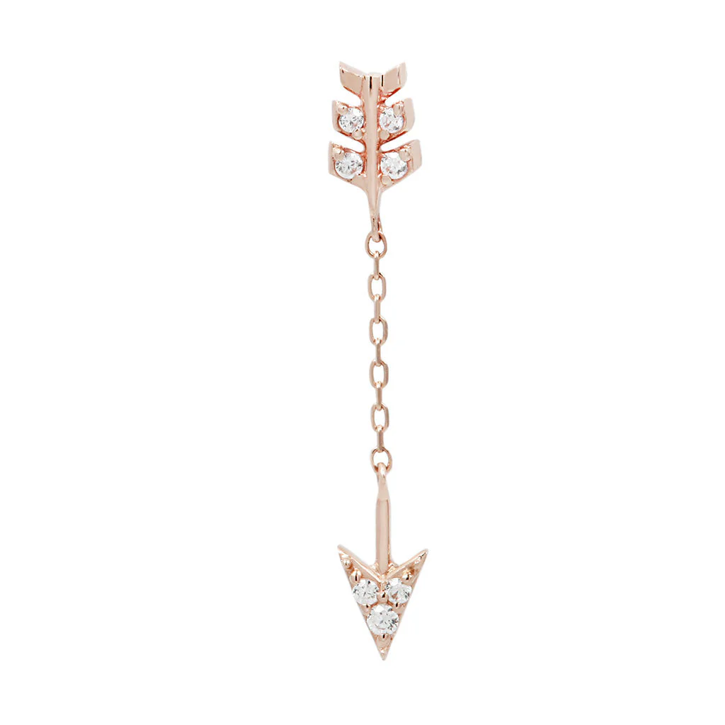Κινήσου με απόλυτη λάμψη μέρα ή νύχτα — το Merida αντανακλά το φως από κάθε γωνία! Το σχέδιό του, σε βέλος που κοιτά προς τα κάτω, ολοκληρώνεται με 7 CZ, εκ των οποίων οι 3 κρέμονται από αλυσίδα στην άκρη του βέλους. Αυτό το ονειρικό κομμάτι δημιουργεί κίνηση και λάμψη όπως κανένα άλλο. Στυλάρεται εύκολα σε ear piercings όπως λοβό, helix ή flat.