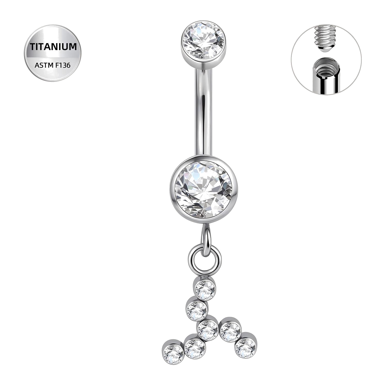 Navel Bezel CZ Set with Fan Shape Dangle