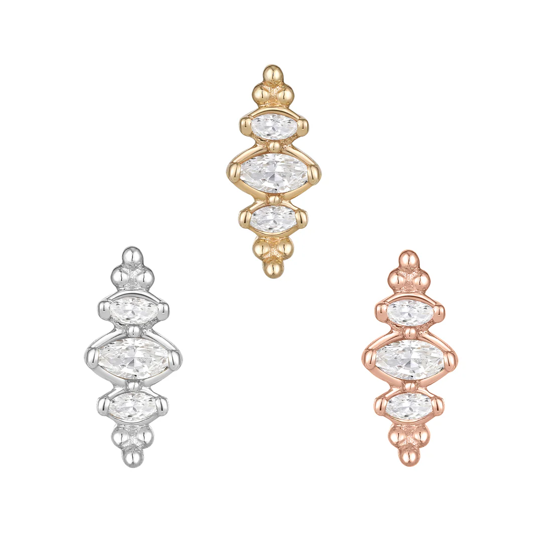 Ένα κομμάτι που κεντρίζει το βλέμμα με την απόλυτη συμμετρία και τη γεωμετρική του ισορροπία. Το Prose συνδυάζει λαμπερές CZs με λεπτές bead λεπτομέρειες, δημιουργώντας ένα elegant & structured look που αναδεικνύει κάθε curated ear.