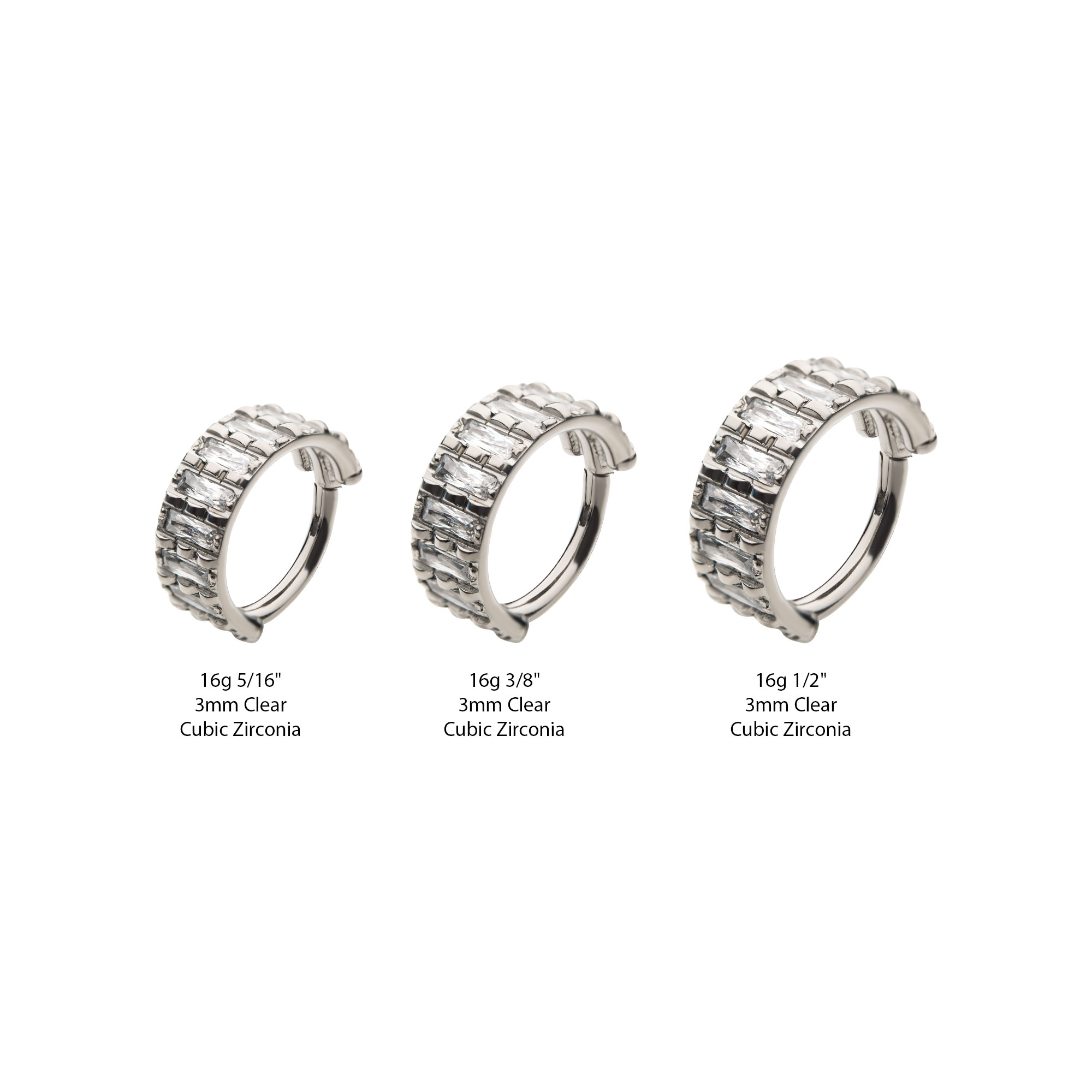 • Ένα εντυπωσιακό clicker με σειρά από baguette-cut πέτρες που χαρίζουν sleek λάμψη σε κάθε γωνία. Το side-facing design αναδεικνύει τις πέτρες ακόμη περισσότερο πάνω στο αυτί, ενώ ο hinged μηχανισμός προσφέρει εύκολη τοποθέτηση και άνετο καθημερινό wear.