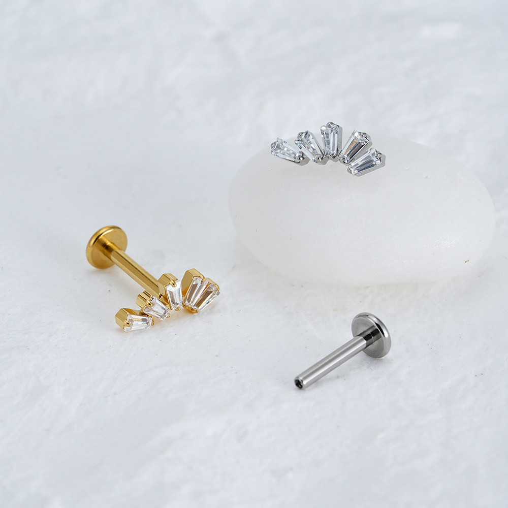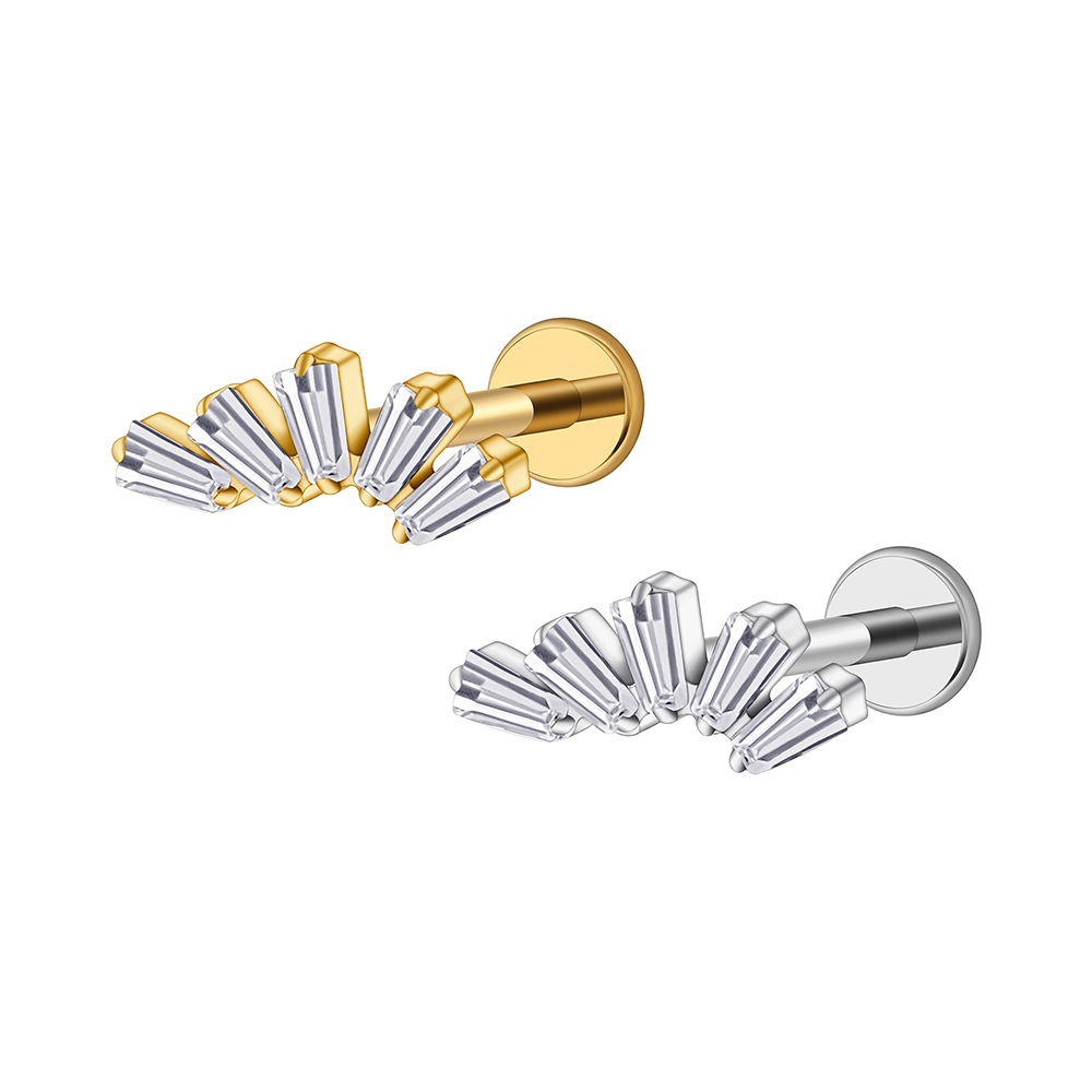 Ένα λαμπερό και εντυπωσιακό cluster που ανοίγει σε σχήμα “fan”, προσφέροντας έντονη λάμψη από κάθε οπτική γωνία. Κατασκευασμένο από premium Implant Grade Titanium, αντέχει στον χρόνο, δεν μαυρίζει και παραμένει άνετο στο αυτί.