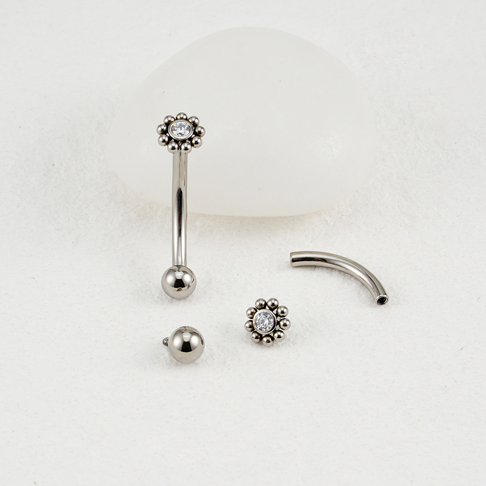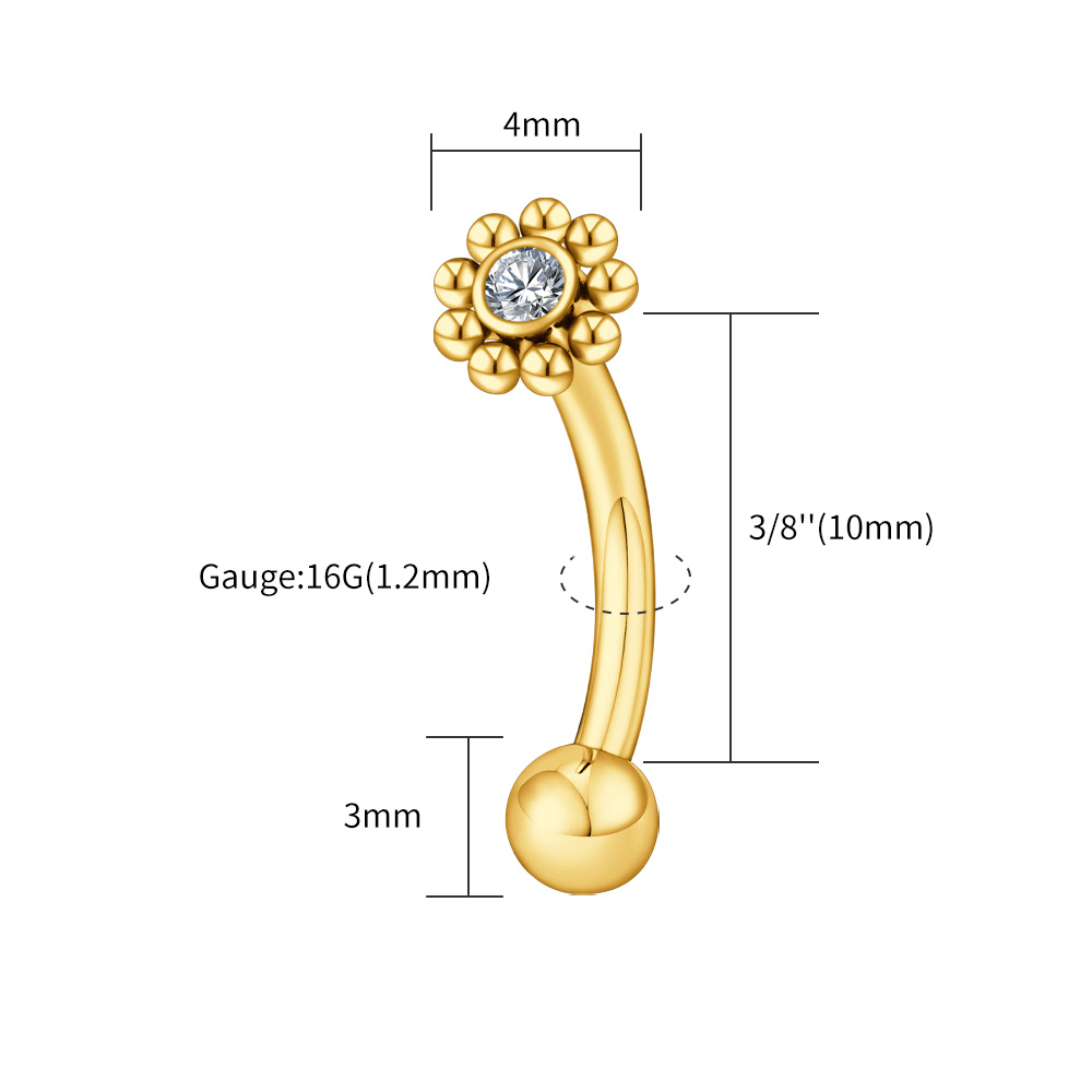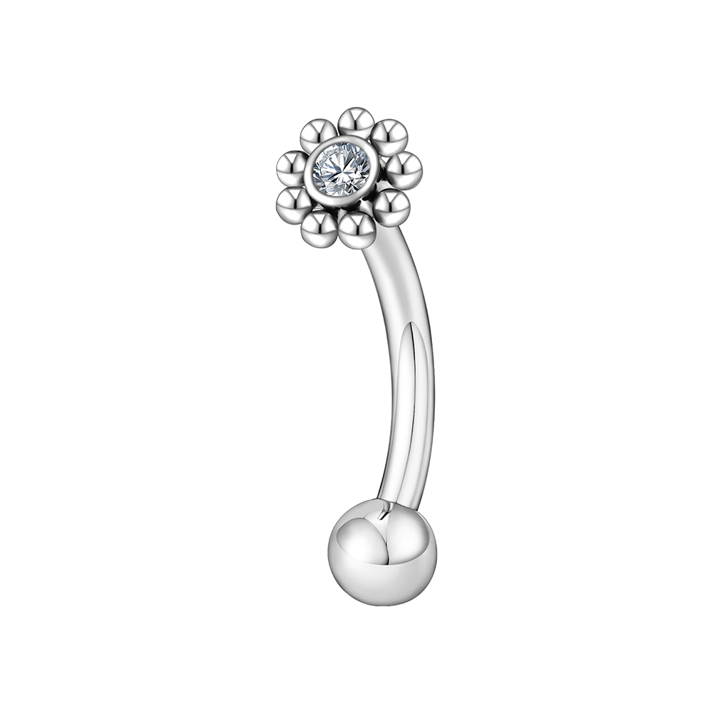 A timeless rook piercing jewelry with a petite daisy top and smooth lower ball — delicate detail with everyday comfort.