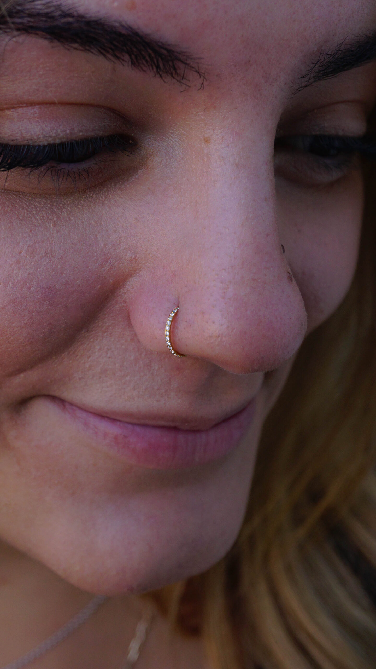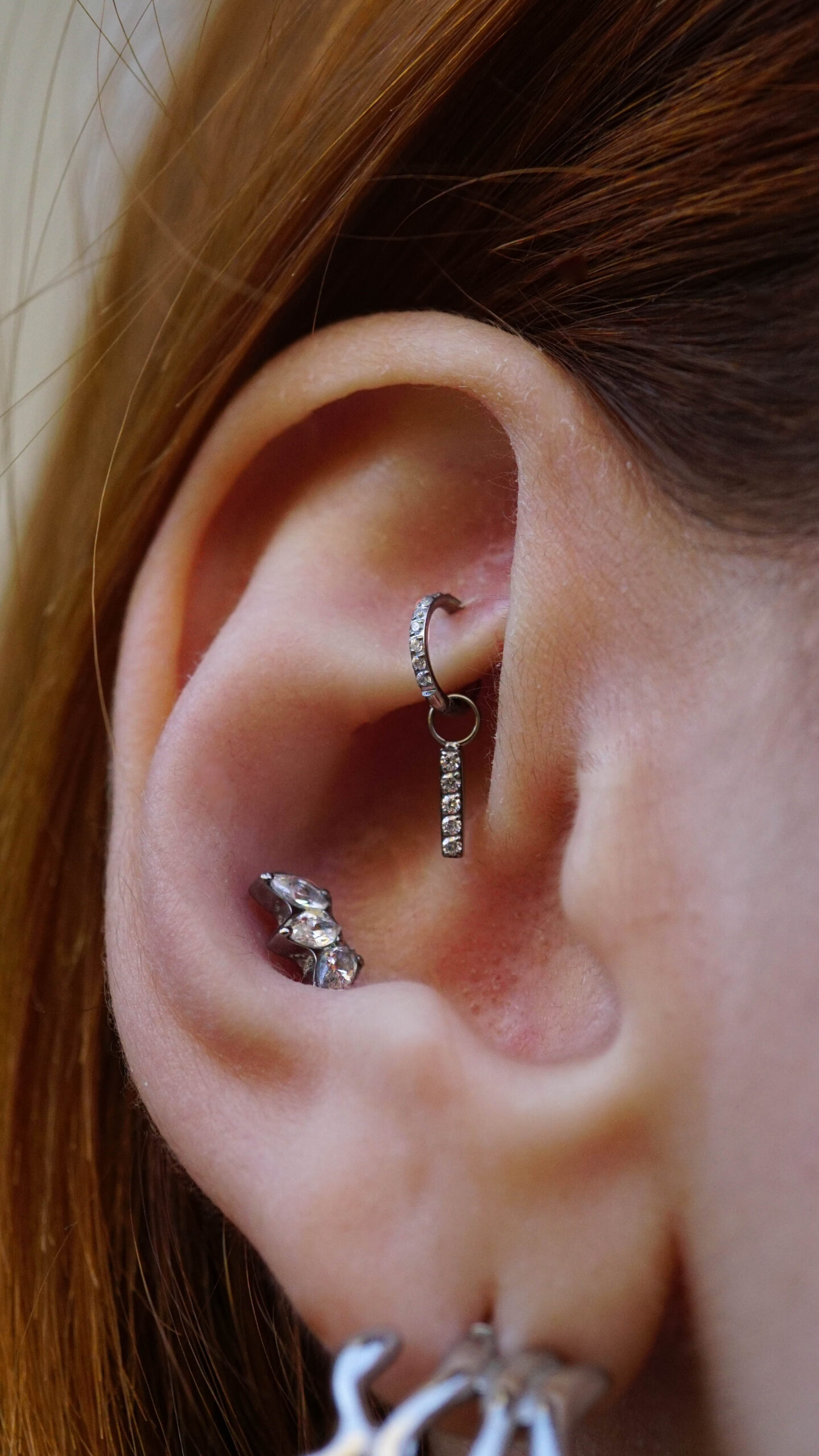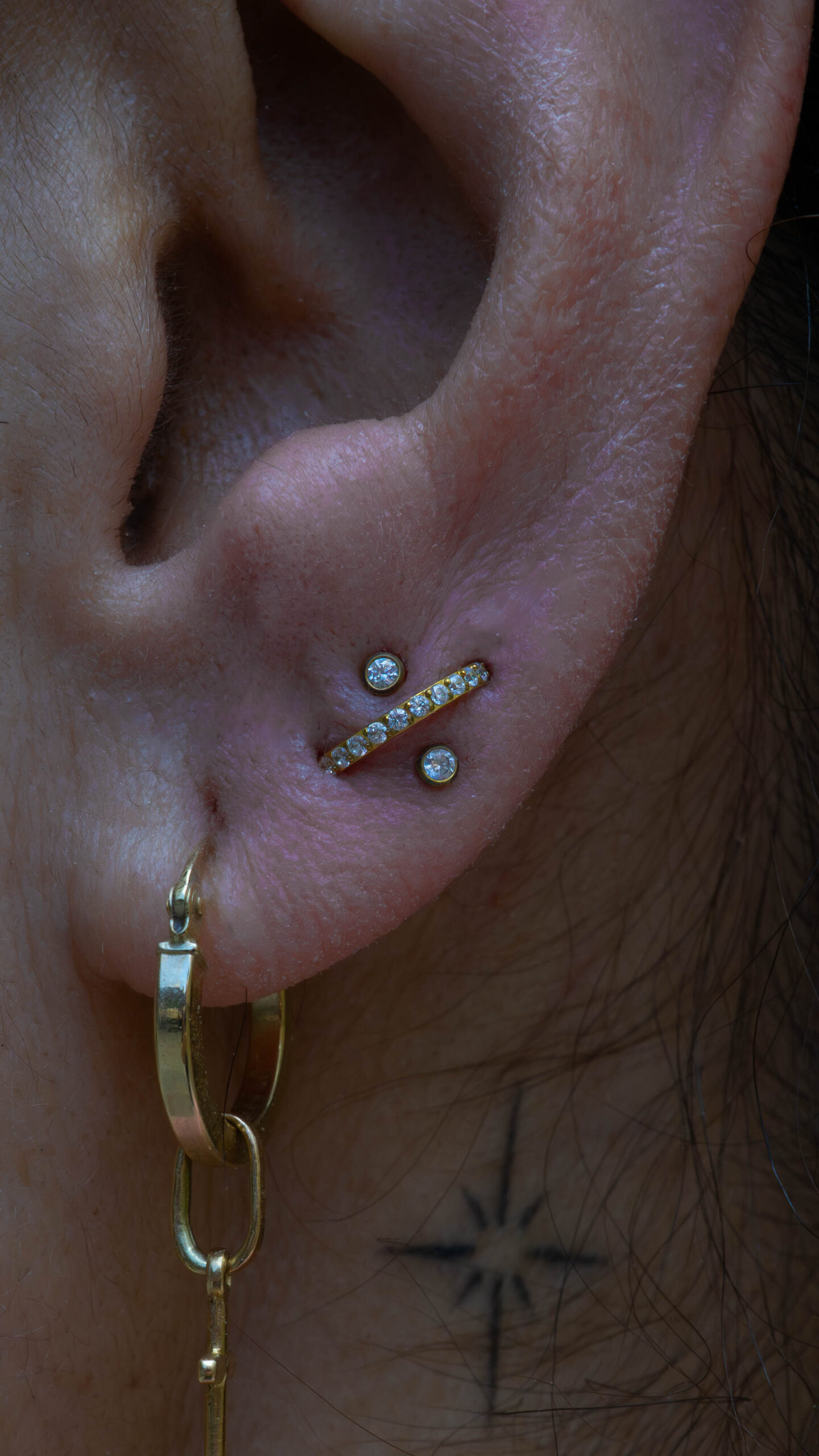 Η τοποθέτηση των λαμπερών CZ σε pavé δίνει έντονη λάμψη σε κάθε piercing, καθιστώντας το ιδανικό για minimal αλλά και πιο πολυτελή projects.